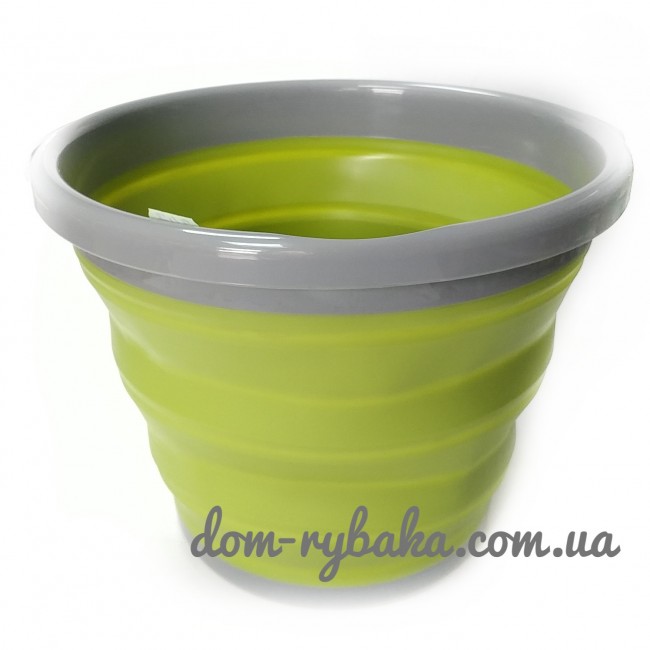 Ведро которое можно сложить из силикона. Ручка для переноски и крепление для веревки если необходимо набрать воду с высокой лодки или обрывистого берега.