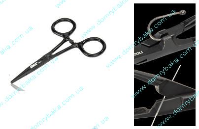Затиск багатофункціональний для вилучення трійників з пащі при лові хижака, ножиці для волосіні, шнура...