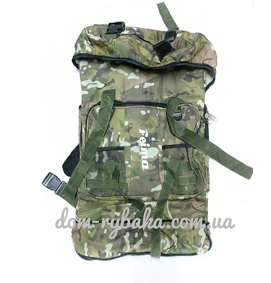 Жестткая конструкція. Великий рюкзак, дві бічні кишені, один передній велика кишеня, головне відділення на блискавці до низу рюкзака. Додатковий верхній клапан від дощу і кріплення клапана під які можна розмістити каремат..Ніз рюкзака укріплений до..