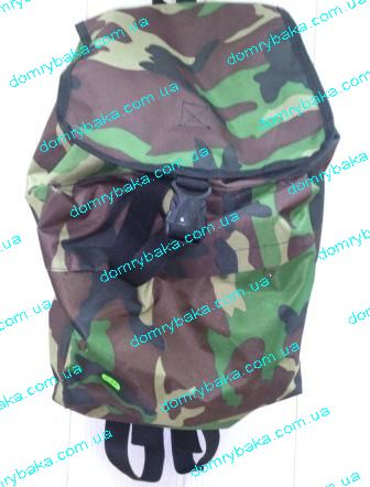 Брезентовий рюкзак темно-зеленого кольору. Міцні шлейки. Широкий клапан для захисту від опадів зверху. Розміри 60см висота ширина 40см глибина 20см колір камуфляж..