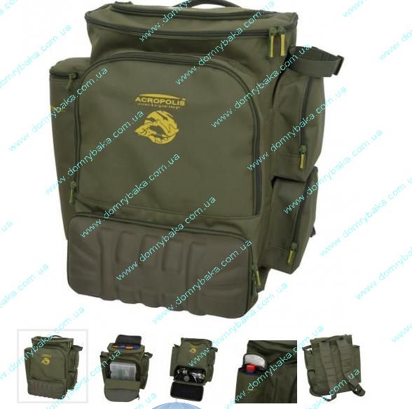Надійний рюкзак розроблений для максимальної зручності рибалки. зовнішній і внутрішній кишеню з поділом на відділення фурнітура та блискавки YKK карман під термос дві регульовані зовнішні стяжки по каремат або намет спинка і плечові ремені з м'яким..