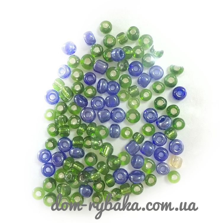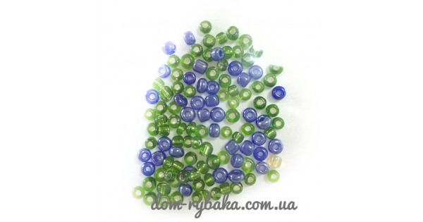 Бісер для виготовлення монтажів від снасті вбивця карася до фідерної оснастки. Діаметр 3-4 мм Колір зелений, синій, прозорий..